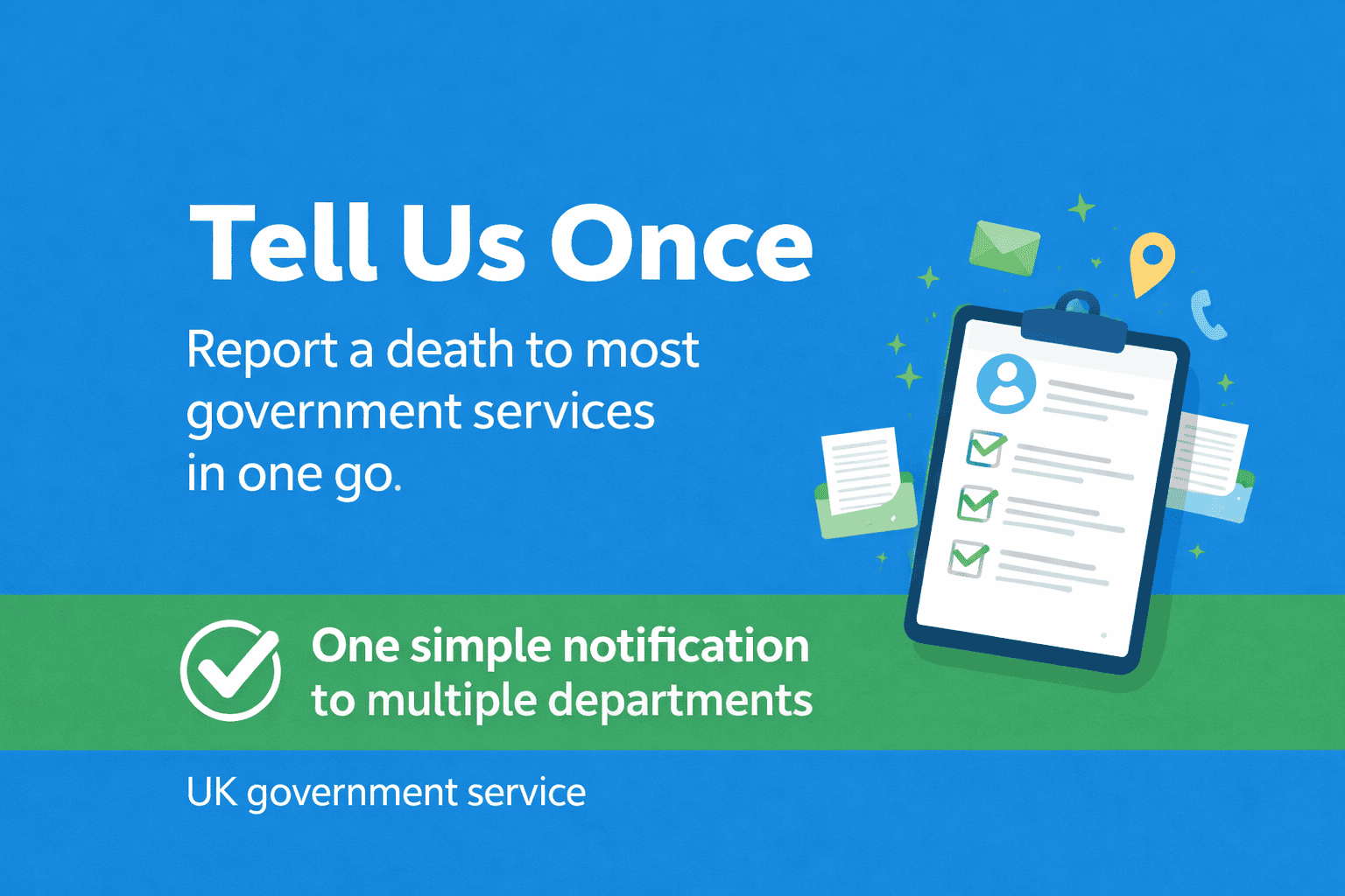 Tell Us Once is a government-run service that helps notify several public sector organisations at the same time, including the Department for Work and Pensions (DWP), HM Revenue & Customs, and local councils.